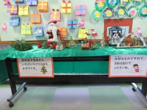 【部長室だよりEpi.31】「クリスマス飾り」小学部第1校舎の児童玄関には、月替わりの壁紙が貼ってあります(もちろん、第2校舎にも)。今月は2年1組がクリスマスをイメージした飾り付けがお目見えしました。そして…、昨日の放課後のこと、付け加えられたクリスマス飾りが登場 ...