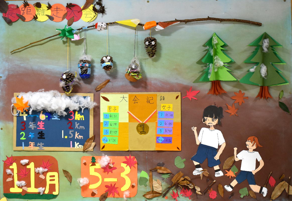 小学部の児童玄関前には児童が月ごとに担当して作った壁かざりがあります。来校の際に,児童の力作をぜひご覧ください。