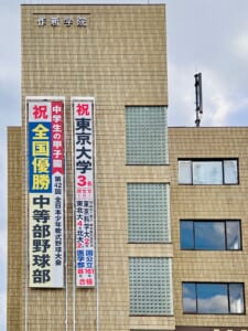 作新学院「聴蛙館」に、中等部野球部全国優勝の懸垂幕が掲示されました!学院事務局からお知らせがありました!軟式野球部の全国制覇を祝い、懸垂幕を作成していただきました。ありがとうございます。関係者の皆様、改めておめでとうございます。なお、中等部のアクティブホールでは、優勝旗・優勝カップ・表彰 ...