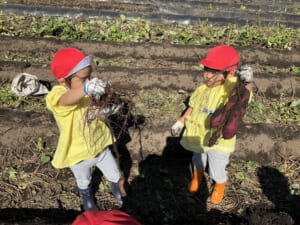 さつまいも掘り(年少組)昨日に続いて、さつまいも掘りの第二段が行われました。2日目は年少組。年少組さんにとっては、初めての収穫体験です。お天気にも恵まれました。 今日お手伝いに来てくださったお父さんのほとんどが初参加ですが、とても手際良くサポー ...