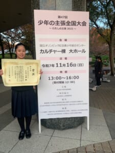 令和7年11月16日(日)に国立オリンピック記念青少年センターで行われた、第47回少年の主張全国大会に栃木県の代表として小林心結さん(3年)が出場しました。 小林さんは河宇大会、県大会で最優秀賞に輝き、全国大会出場の運び ...