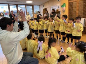 保育参観2日目は年中組でした。平日にもかかわらず、ご両親で来られた方が多く、たくさんの保護者をお迎えしての参観となりました。 まずは園庭で、年中組が選んだ「どうぶつ体操」「ギョギョギョギョーザ」の体操を見ていただきました ...