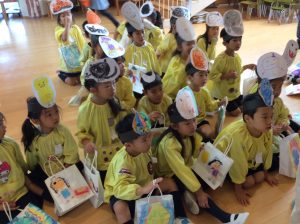 幼稚 パン屋さんごっこ(青1組) 投稿日:2019年10月31日 青1組さんのパン屋さんごっこ。「ハロウィンパン屋」ということで お客さんもお面や衣装など、ハロウィンの格好で賑わいました。 青1組さんは2回目のパン屋さん。商品を並べたり、接客をしたり、随分手慣れた様子。 今日はハロウィンのスペシャルなおまけ。職員室の魔女さんに 「trick or treat!」と言うとゼリーのプレゼントがありました。 その後は、年長組はホールで、他のクラスは各お部屋で、ハロウィンパーティーを楽しみました。