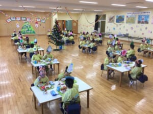 ひよこ組、ぴよぴよ組はそれぞれのお部屋でしたが、来年は大きな場所で食べられるからね。