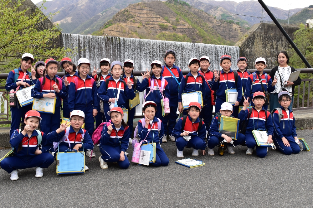 砂防ダムから流れる美しい水や、野生の動物(サルとシカをバスの中から見ました)などの自然に触れ、また、新しいクラスになってから初めての校外学習ということもあり、楽しく活動することができました。