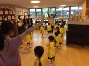 お家の方が見ているので、恥ずかしがってしまう子もいましたが、みんな元気に体操できました。