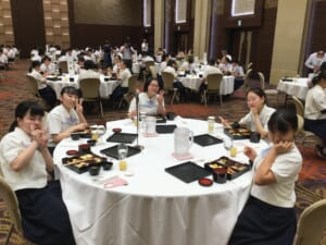 中等 3年生修学旅行の風景③ 投稿日:2021年6月26日 2日目宿泊地の長野メトロポリタンホテルの夕食・朝食風景を紹介します。長野に転校した生徒が訪問して挨拶してくれました。ホテル側のコロナ対策を意識した配慮ある食事には感謝しています。生徒たちも嬉しそうでした。密を防ぐための部屋割りとなったため、ゆっくりと休養できたと思います。 【食事風景】