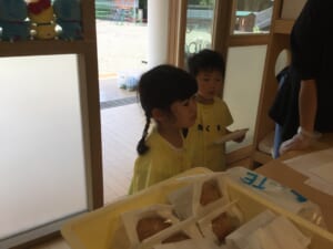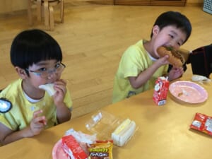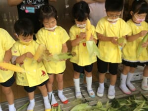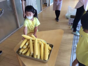 今日は季節の食べ物「とうもろこし」も出ました。朝採りのとうもろこし。皮は子どもたちが剥きました。
