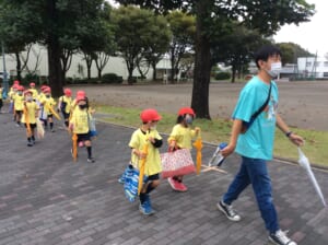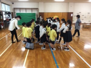 作新学院は幼稚園から高校まである大きな学校ですが、特に幼稚園と小学部は仲良しです。今日は楽しんで行ってくださいとお話ししてくれました。