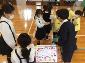 いつもの年は一斉に行うのですが、今年は新型コロナウイルス感染の影響で、時期をずらして、クラスごとに分散して行いました。この日のために小学部生は時間をかけて準備をしてくれていました。