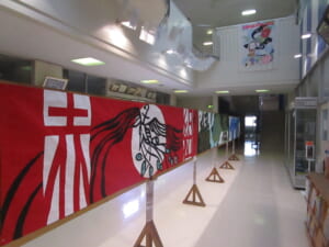 中等 アクティヴホールの風景 投稿日:2021年11月16日 9月の運動会の際に、例年色別対抗のポスターを美術部が制作し、当日会場の校庭に展示していますが、今年度はコロナ禍により実施が見送られました。そこで、この色別対抗のポスターを、11月の面談期間中にアクティヴホールに展示することになりました。美術部の生徒たちが心を込めて制作したポスターなので、是非面談前後の時間で保護者の皆様には見てほしいと思います。 【アクティヴホールの展示の様子】