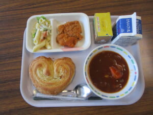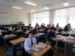 中等 2021年2学期終業式給食風景 投稿日:2021年12月22日 12月22日(水)2学期終業式の給食は、クリスマス特別メニューなので、給食時間を盛り上げるために、竹澤教諭のクリスマス音楽DJを校内放送で流し、皆で楽しくいただきました。2学期頑張った自分自身にお疲れ様と3学期も頑張ろうの前向きさが伝わってくる風景でした。中学時代は心も体も大きく成長する時なので、しっかり食べましょうね。 【各クラスの給食の様子】