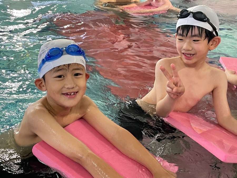 今年も子どもたちの大好きなプール授業が始まりました。小学部では、ビッグツリースポーツクラブ様のご協力の下、毎年スポーツクラブの温水プールで水泳の授業展開を行っております。1学年3クラスを泳ぎの能力によって4グループに分けて4名のプロのインストラクターに入っていただき、5名の教員が見守ります。移動、更衣を含めて1回2時間半楽しく水泳を習っています。プロのインストラクターの方々の指導はさすがなもので、とても要領よく、子どもたちも大喜びです。普段より多い教員が見守っているため、より安心感があります。今日も水に顔をつけられなかった子が「泡ぶくぶくができるようになったよ~~!」と会う教員、会う教員に満面の笑みで報告していました。