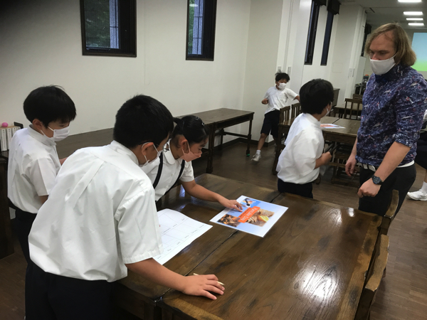 1日目のカルチャーレッスンでは,「ブリティッシュフェスティバル」「チェス」「エンボスカード」の3つのグループに分かれて行いました。説明もすべて英語でしたが,しっかり内容を理解して楽しくレッスンを進めることができました。