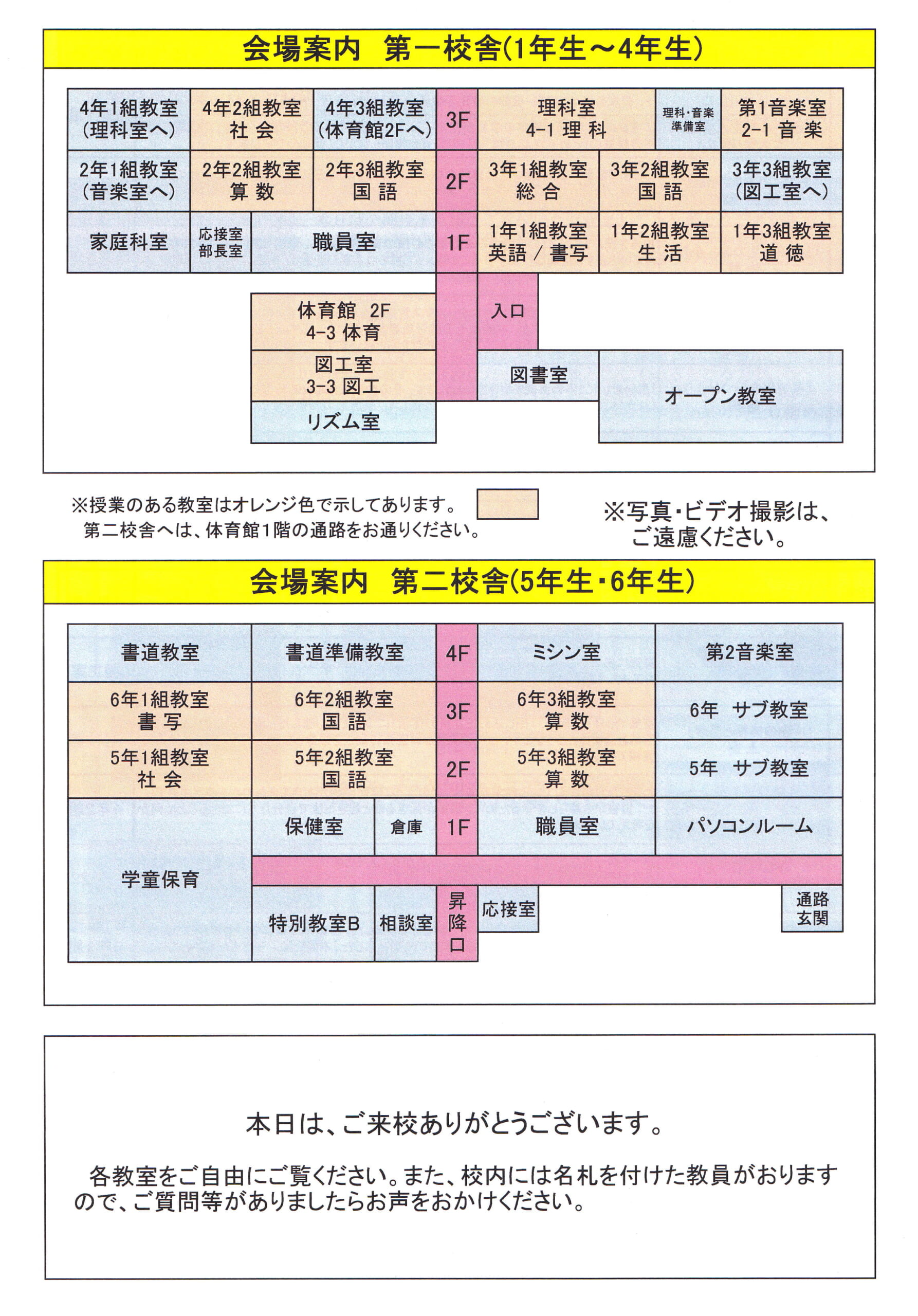 ・第1校舎では1~4年生の授業を,第2校舎では5・6年生の授業を公開します。