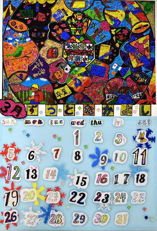 カレンダーは毎年気仙沼小学校のホールに飾っていただいています。「ずっとなかよし」を合い言葉に,これからも長く交流を続けていきたいと思います。
