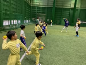 幼稚園の授業や行事に「野球遊び」を取り入れ、遊びの体験から競技に対する好奇心や想像力、感性を育んでもらおうという目的で、栃木県民球団「ゴールデンブレーブス」の選手の皆さんが幼稚園に来てくれました。高校の雨天練習場をお借りして、年長組の園児が野球遊びの楽しさを教えて頂きました。