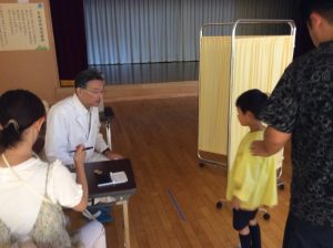子供たちの目の高さに合わせて床に座って検診してくれます。