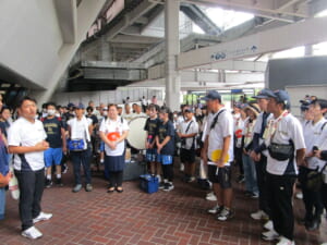 8月14日(月)横浜スタジアムにて、全日本少年軟式野球全国大会1回戦が行われました。中等部野球部は、3試合目対北海道中標津中学校と対戦しました。中等部吹奏楽部とOBOG有志を中心とした中等部初の応援団に、保護者会・高校硬式野球部員の応援を加えて、盛大に試合を盛り上げることができました。結果2対0で勝利し、2回戦に進むことができたので、優勝を目指してこれからの試合も頑張って欲しいと思います。選手たちは、ベイスターズの本拠地の球場でのびのびと試合を行えることに喜びを感じている様子でした。そして何よりも硬式野球部員の迫力ある応援をもらい、作新一校一家を堪能できる試合になったのは、応援に出向いた吹奏楽部の生徒たちに良い思い出になっとことと思います。試合の様子と応援の様子を紹介致します。