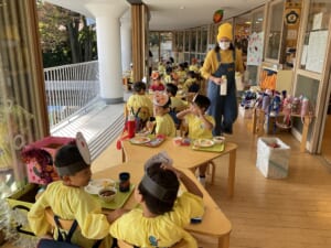 幼稚園ではひと足早く、28日の土曜日に「おやじの会」主催のハロウィンウオークラリーを行いましたが、今日が本当のハロウィンの日です。幼稚園ではハロウィンを盛り上げるために、先生たちが変装したり、子供たちにハロウィンの本当の意味をわかりやすくお話したりしました。