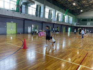 ひとつ目の競技、「ポンとボール」は子供が投げたボールを大人が箱でキャッチする競技です。