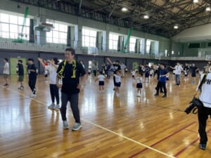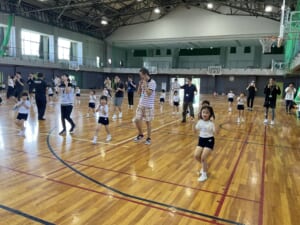 準備体操は「とちまるくん体操」お父さんたちも上手です。
