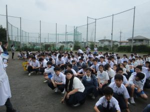 7月11日(木)15:00~16:00に今年度最初の避難訓練を行いました。地震を原因とする火災を想定して、事前に家庭科室から出火するのを告知しておいて中等部グランドに一斉に避難しました。全学年が3分程度で校舎外に出ることができ、4分程度で整列完了することができました。その後グランドでは、各クラス代表が水消火器を使用して消火訓練を行いましたが、消火活動前に大きな声で火事だと叫ぶ訓練も行いました。周囲に火事であることを知らせる声出しは、災害時には最も大切なことになることを再認識してほしいと思います。震災学習を行っている中等部では、日頃から緊急時の対応を意識しておいてもらいたいですね。2学期には本番同様の告知なしの訓練を予定しています。本日以上に意識を高めて訓練に対応して下さい。よろしくお願いします。