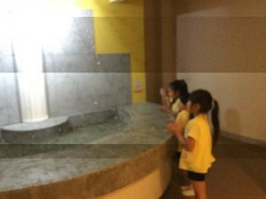 もうひとつの班はお風呂の前に環境センターでゴミ処理場の見学をして、リサイクルのことをお勉強しました。