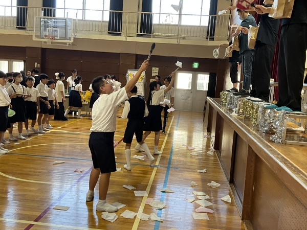 小学 秋祭り 投稿日:2025年10月2日 9月30日に,小学部の秋祭りを行いました。 当日は,保護者役員の皆さまが朝早くから心を込めて準備してくださった楽しいゲームやものづくりのコーナーが並びました。子どもたちは、友達と一緒に挑戦したり,作品を完成させたりしながら,笑顔いっぱいで過ごしていました。 子どもたちの歓声と笑い声に包まれたひとときは、思い出に残る楽しい時間となりました。ご協力いただいた保護者役員,おやじの会幹事の皆さまに心より感謝申し上げます。