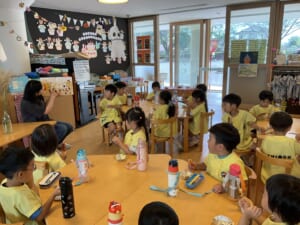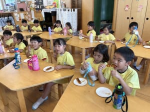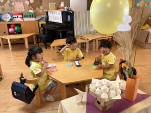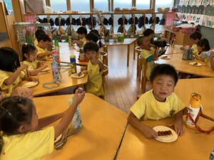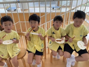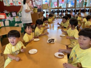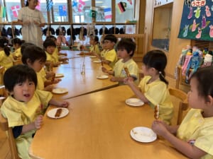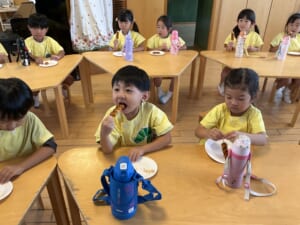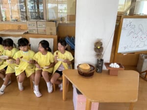 お月見だんごを食べることで、健康と幸せが手に入ると考えられています。みんなしっかりと食べていました。10月6日には是非、お家の方と満月を楽しんでくださいね。