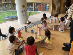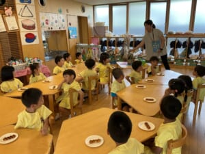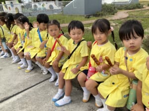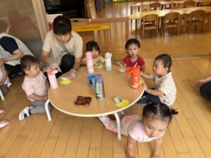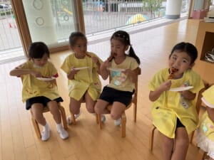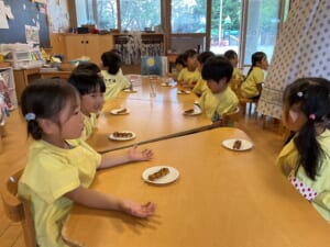 ひよこ組は先生が絵本を読んでくれた後にお団子を食べました。