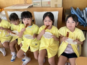 各学年の成長に合わせて、先生が本や紙芝居で十五夜についてのお話をしてくれた後、クラスのみんなで月見団子を食べました。