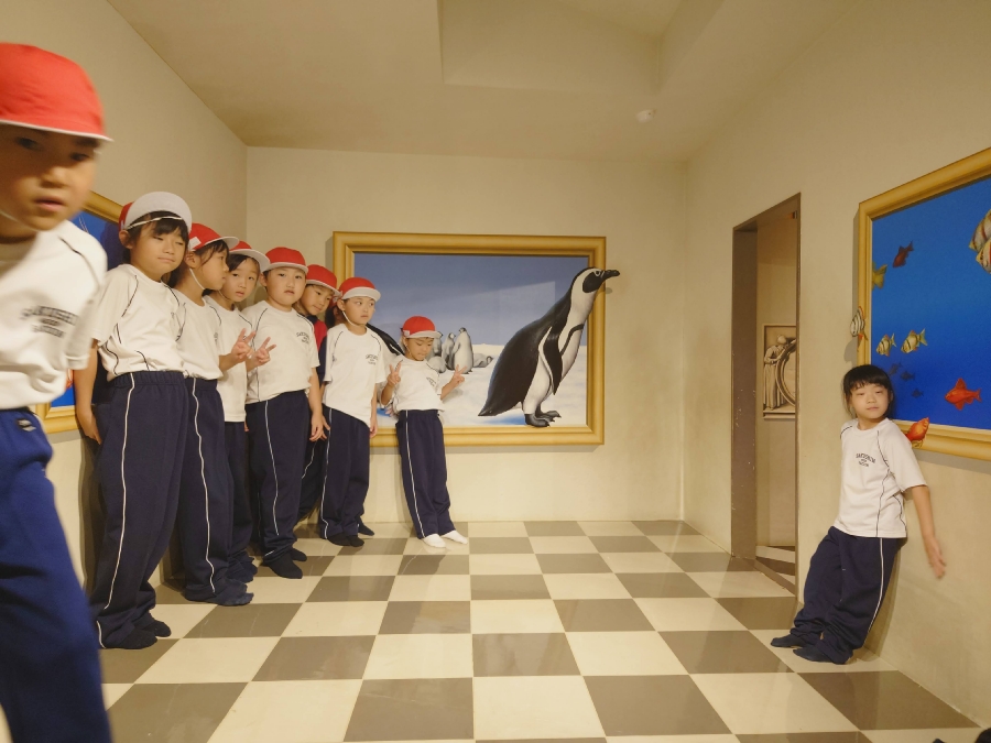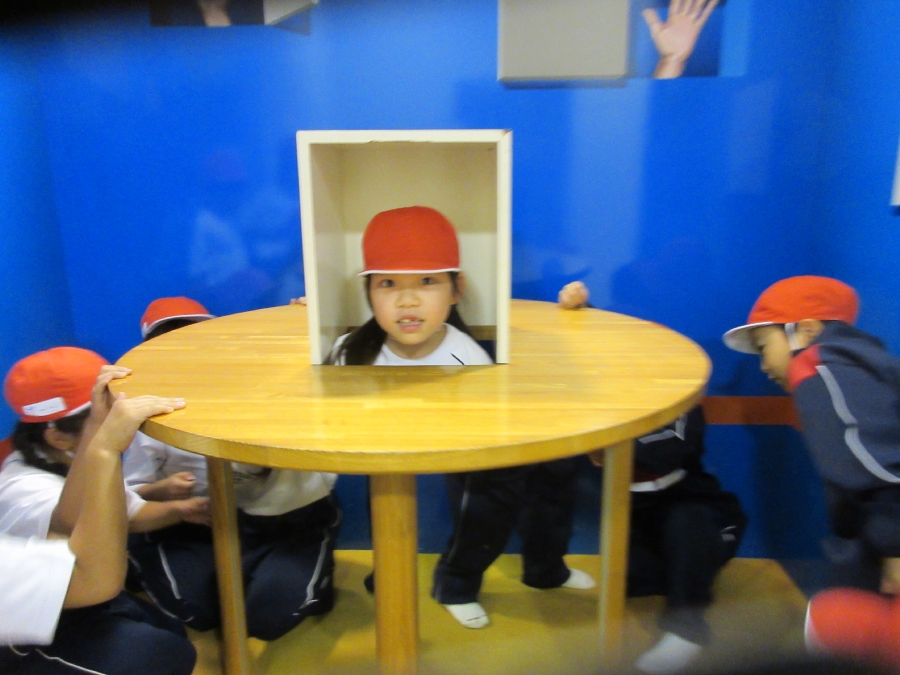 最後は、『ふしぎの船』で、科学の原理と人間の生理を利用した、不思議な現象を体験しました。錯覚を使ったトリックや、鏡の迷路など、どれも子どもたちは目を輝かせていました。