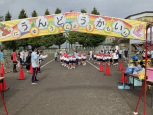 2学期が始まり、残暑厳しい中練習して来た運動会当日を迎えました。前日の雨が上がって、爽やかな運動会日和となりました。入場行進の始まりです。腕を大きく振って、クラスごとに元気に入場して来ました。