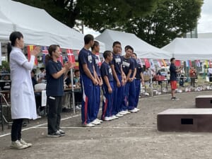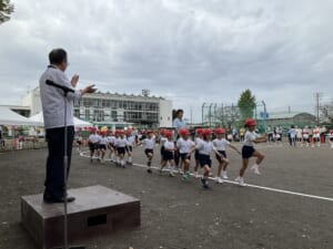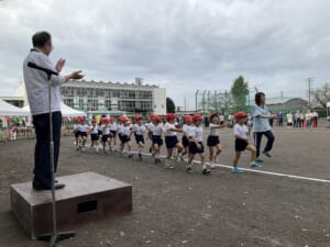 今日の運動会を陰で支えてくれた保健室の先生、体操教室の先生、軟式野球部のお兄さんたちにご挨拶。ありがとうございました。