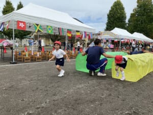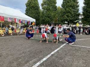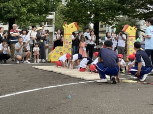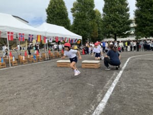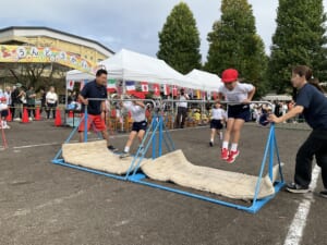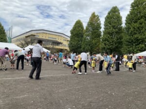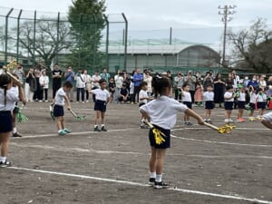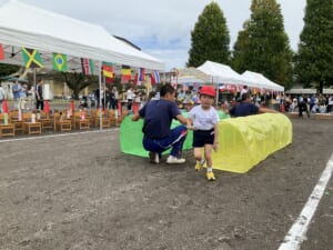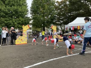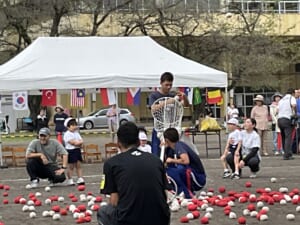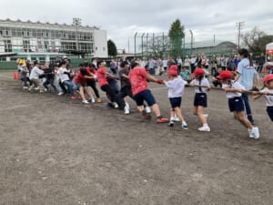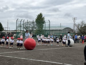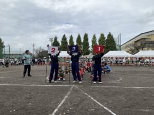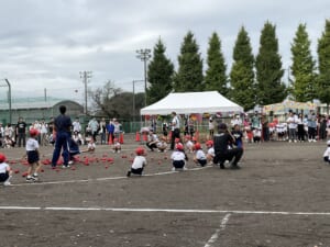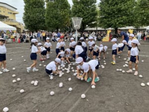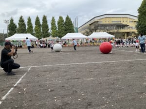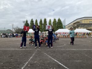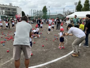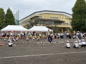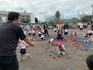 親子の連携で、親子玉入れは赤組が勝利しました。