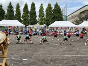 いよいよ最後の種目「よさこいソーラン」和太鼓の音に合わせて入場です。