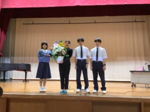 最後には、榎本さんを中心に生徒全員と写真撮影を行いました。
