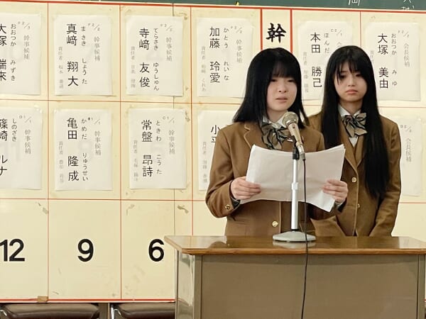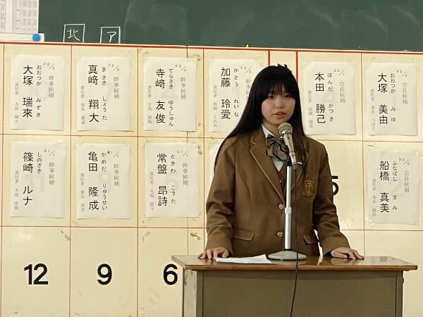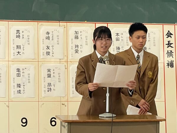 情科 ひとつの一票が、学校を動かす力になる。「情報科学部生徒会選挙」 投稿日:2025年10月8日 10月8日(水)令和8年度情報科学部生徒会役員選挙を実施しました。今年度は、生徒会長に3名が立候補し、それぞれが学校をより良くしたいという熱い思いを胸に、立会演説会に臨みました。演説会では、立候補者が実現したい公約をしっかりと述べ、会場の生徒たちは真剣な表情で耳を傾けていました。今回の選挙は、役員を決めるだけでなく、生徒一人ひとりが「選ぶこと」や「責任を持つこと」の意義について深く考える貴重な機会となりました。 長岡情報科学部部長挨拶立会演説会の諸注意終了ベルの確認立会演説立会演説投票の諸注意閉会の挨拶しっかり考えて投票しました投票