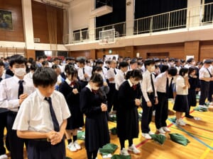 モーニングデボーションの後には、地球環境クラブから、10/18(土)に二荒山神社前、オリオン通りとシンボルロードの交差点、東武百貨店前で行われる街頭募金と「遅れて贈る年賀状ギフト」の案内が行われました。