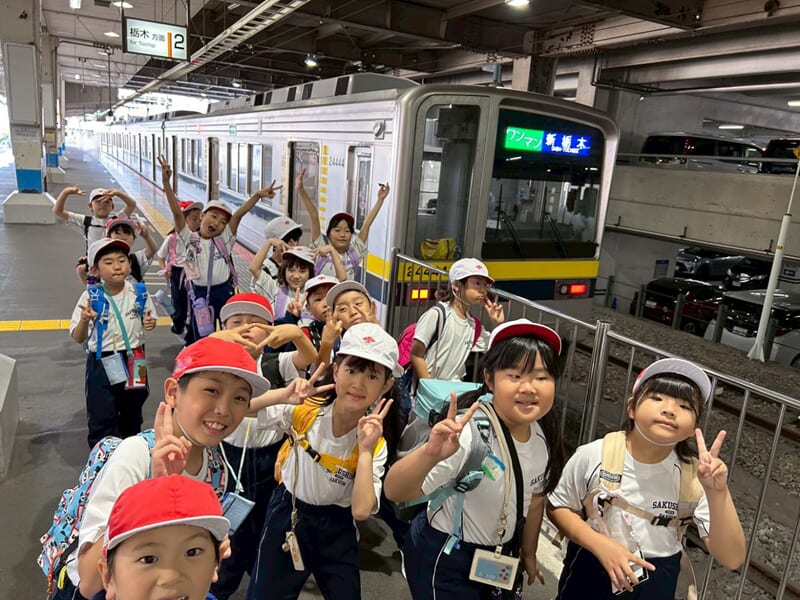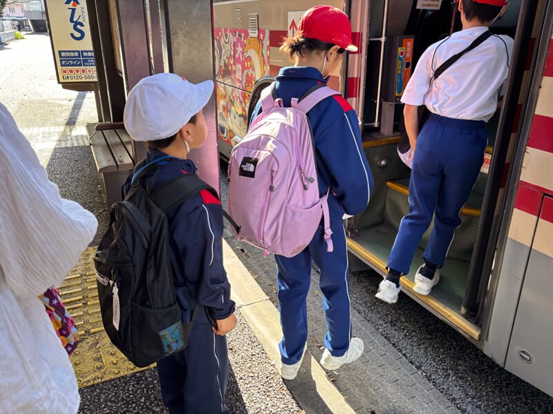春と秋の遠足では貸し切りバスを利用していますが、今回は公共交通機関の乗り方を学び、少し遠くまで自分の足で歩き、バスと電車の旅を楽しんできました。