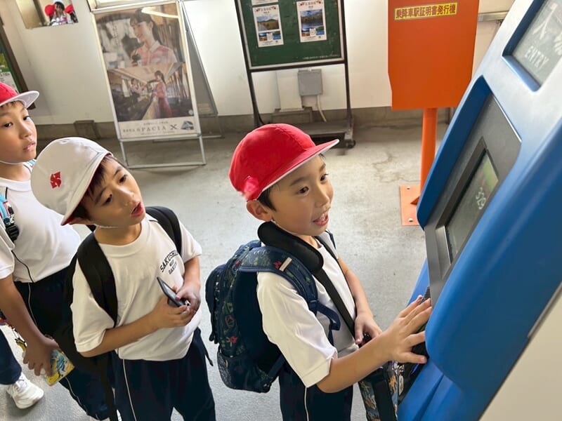 春と秋の遠足では貸し切りバスを利用していますが、今回は公共交通機関の乗り方を学び、少し遠くまで自分の足で歩き、バスと電車の旅を楽しんできました。