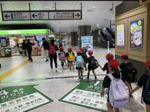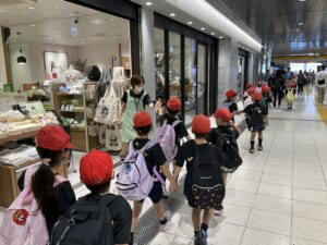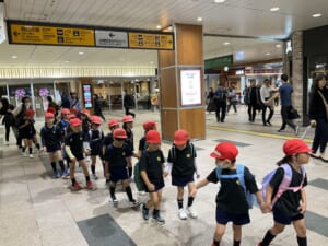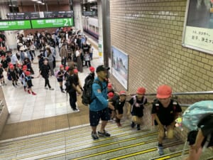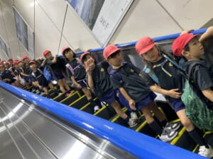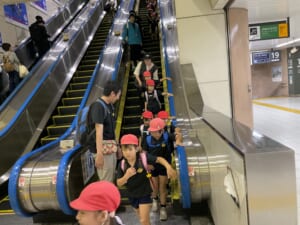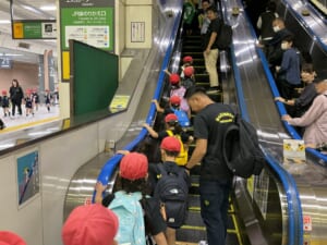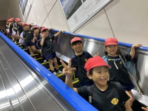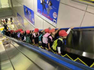 四役のお父さんに朝のご挨拶をして、園長先生と遠足のお約束を確認しました。上野駅まではあっという間。長いエスカレーターで地上に登ります。