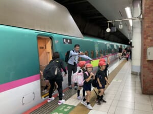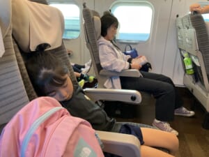 帰りの新幹線では、すっかり疲れて眠ってしまった子もいました。