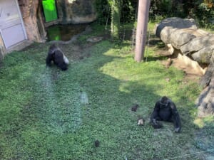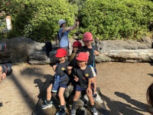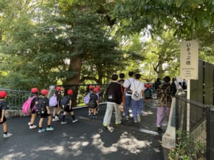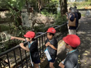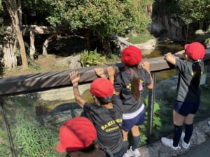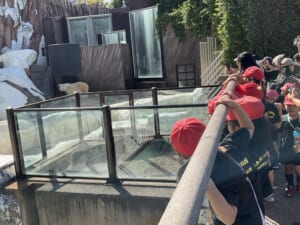 お昼が終わったら、午後はクラスごとに東園を回ります。東園はゾウやゴリラ、トラシロクマなどの大物動物が見られます。またいそっぷ橋を渡って東園へ。