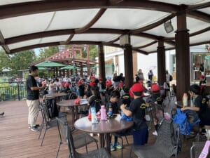グループ活動を見守ってくれたお父さんたちもほっとひと息。