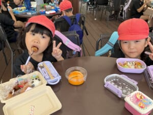 いよいよ待ちに待ったお弁当。「お腹すいた〜」の声があちこちから聞こえました。