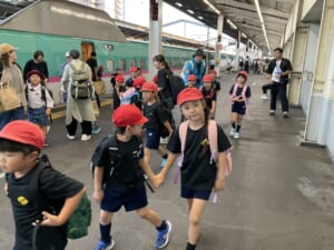 年長組の大きな行事のひとつ、上野動物園の遠足がありました。上野駅までは団体専用の新幹線「パンダ号」に乗って行きます。作新学院幼稚園ではもう20年近く前から、園児と先生とお手伝いの保護者4役さんとだけで行っています。お家の方と離れて東京まで行くのは初めての経験という子がほとんどですが、この遠足を通しての学びは貴重なものがあります。「自分の力で行動する」という園の目標のひとつです。