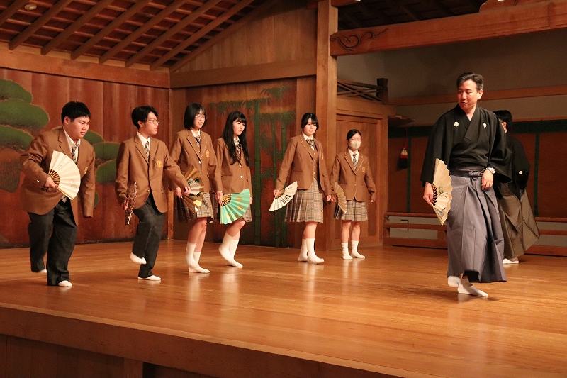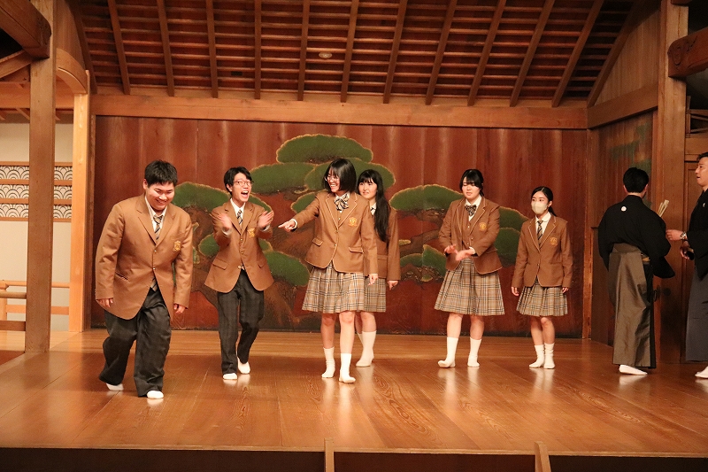 初日は北野天満宮(大学受験合格祈願)と古典芸能(能・狂言)鑑賞です。なんと、金剛流能の重要無形文化財(人間国宝)種田道一先生から直々にご説明をいただきました。