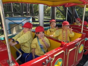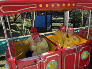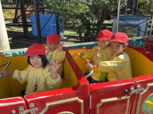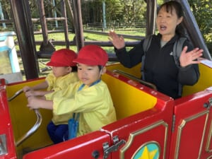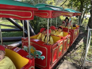 いろいろな動物を見ながら、遊園地の方へ移動しました。お楽しみの豆汽車です。